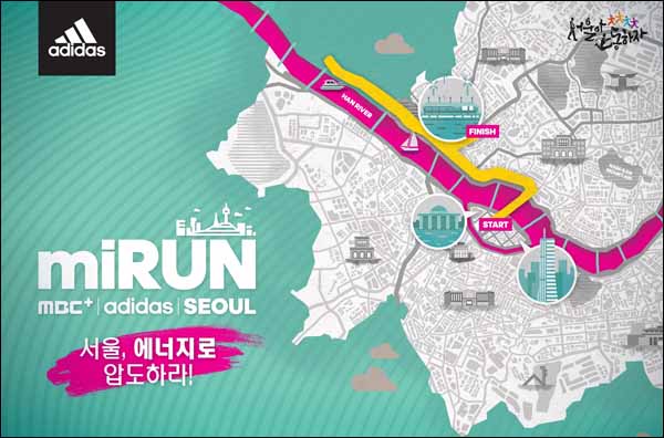 13년의 역사를 자랑하는 ‘아디다스 MBC 한강 마라톤’의 새로운 이름인 이번 ‘서울아 운동하자 2015 아디다스 MBC+ 마이런 서울’ 마라톤은 하프코스, 15km코스, 10km코스 총 3가지의 코스로 약 2만여명의 러너들을 모집하여 진행한다. 아디다스가 지난 4년간 부산지역에서 성공적으로 개최해 온 ‘아디다스 마이런 부산’ 레이스의 성격을 적용하여 젊은 감각의 에너지 넘치는 마라톤 대회로 진행될 계획이다. 대회 장소를 미사리 일대에서 여의도로 옮기고 개최 날짜도 가을 날씨가 완연한 11월로 옮겨 서울 도심 속에서 선선한 가을 바람과 강 바람을 맞으며 러닝을 즐길 수 있도록 꾸며질 예정이다.