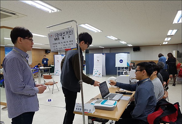 사전투표가 시작된 8일 오전 7시 20분경, 서울 영등포구 대림2동주민센터 제2투표소에서는 직장인들과 지역주민들이 투표소를 찾아 투표하는 모습이 전해졌는데 이 투표소에서 지금까지 투표한 유권자는 관외 13명, 관내 11명으로 집계되었지만 시간이 지나면서 투표참여자들이 늘어나는 추세를 보이고 있다.