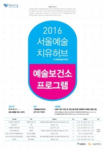 서울예술치유허브의 2016년 프로젝트 입주공모를 통해 선정된 <예술보건소>의 프로그램들은 다양한 장르를 융합해 예술의 치유적 효과를 높이고, 시민 참여 워크숍을 통해 자기 치유를 경험하도록 한 것이 특징이다. <예술보건소>는 작년까지 예술가와 예술치료사로 분야를 구분했던 것과 달리 올해는 대상과 주제별로 특화된 프로그램을 제안 받는 자유 기획형 방식으로 진행됐다.