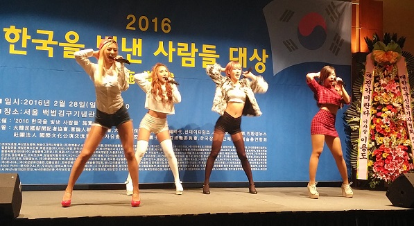 지난 28일 백범 김구 기념관 컨벤션홀에서 열린 '2016 한국을 빛낸 사람들 대상'에서 걸그룹 '사이다(SIDA)'가 문화예술부문 K-POP 대상을 수상했다.