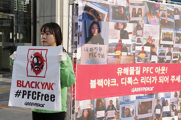 유해물질 PFC(per- & poly-flourinated chemicals: 과불화화합물)의 사용 중단을 요구하며 거리 캠페인을 벌였다. 캠페인 현장에는 “블랙야크 디톡스 리더가 되어 주세요”라는 메시지와 시민들의 사진으로 채워진 포토월이 설치됐다. 사진 속 시민들은 “내 마지막 PFC 장비”라는 문구를 들어 PFC가 포함된 제품을 원치 않으며 더 이상 구매하지 않을 것이라는 뜻을 전달했다.