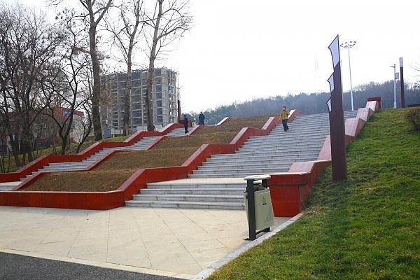 7월30일,개조공사가 정식으로 착공하였다. 공사는 주로 개조와 업그레이드를 병행했는데 그중 아동유원지, 레저광장, 친수 목 잔도, 문화복도, 산정상으로 통하는 산책로, 채색아스팔트길 등 장소와 시설을 새로 증가하고 “벌집”건축기술을 리용하여 원래의 호수와 제방을 개진하여 한결 자연스럽고 아름다와보였다. 헬스기구를 4개 구역에 도합 46개 설치하고 태양에너지등 6개, 경관등 18개, 정원등 18개, 고간등(高杆灯)1개를 운동장 6곳에 새로 설치하였다. 아울러 공원의 시설과 관객들의 안전을 보호하기 위하여 공원 곳곳에 감시카메라 도합 32개 설치하였다.