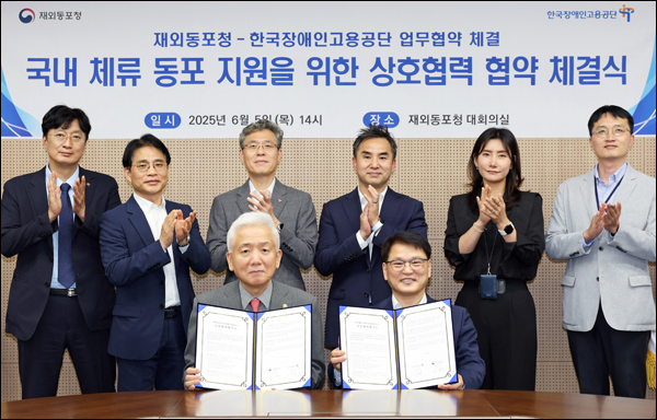 이를 위해 재외동포청은 6월 5일 인천 연수구에 있는 본청에서 한국장애인고용공단(이사장 이종성, 이하 ‘공단’)과 업무협약(MOU)을 체결했다.