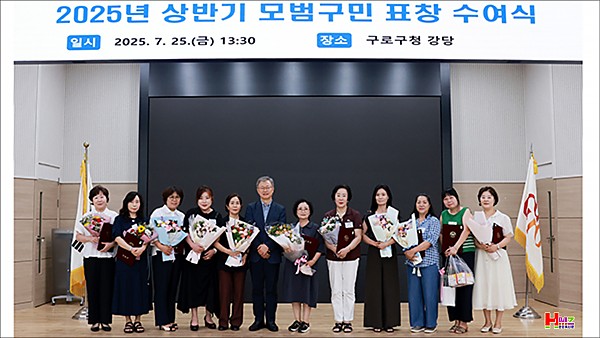 구로구(구청장 장인홍)가 지난 25일 구청 5층 강당에서 ‘2025년 상반기 모범구민 표창 수여식’을 개최했다.