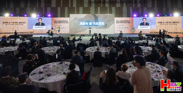 전 세계 한인 리더들이 모여 글로벌 한민족 공동체의 번영을 논의하는‘2022년 세계한인회장대회 및 제16회 세계한인의 날 기념식’이 5일 인천 송도 컨벤시아에서 온⦁오프라인으로 막을 올렸다.