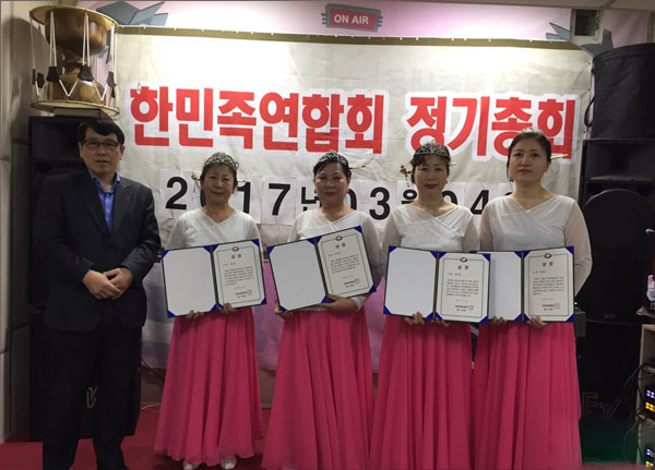 3월 4일 KCNTV한중방송스튜디오에서 진행된 한민족연합회 3.8세계여성의 날 기념행사에서 그 주인공들이 열연을 펼치고 있다. /방예금 기자 |