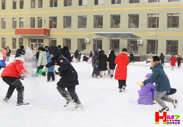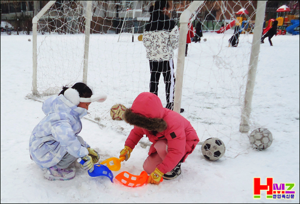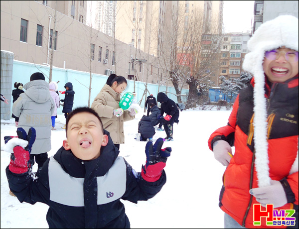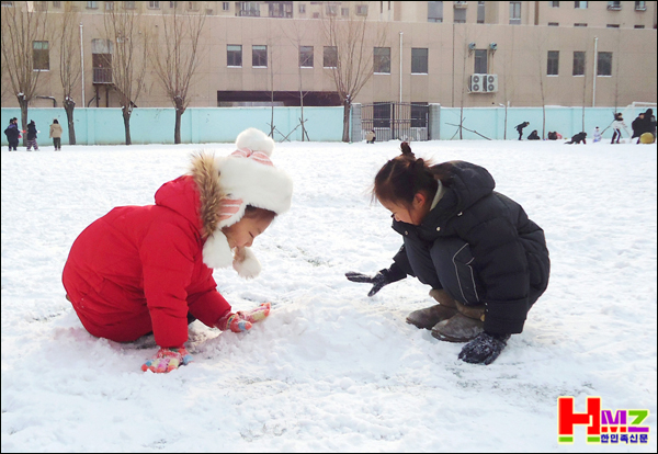 12월 19일 아침에 내린 서설(瑞雪)이,온 교정을 은백세계로 소복단장한 가운데 학생들은 휴식시간을 이용해 신나는 눈 놀이를 하고 있다.