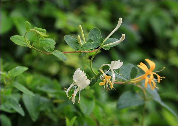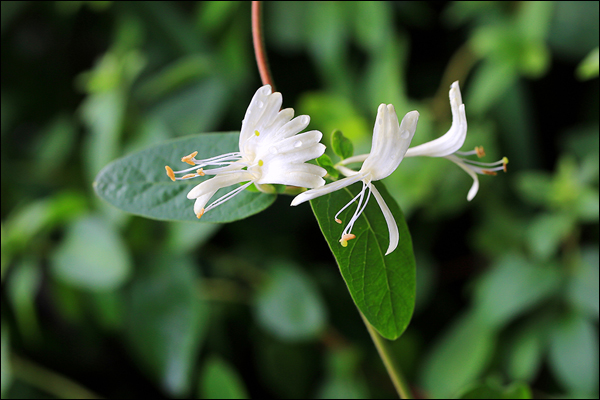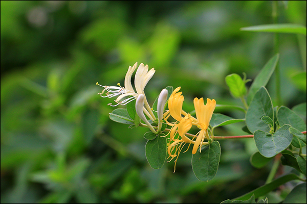 인동덩굴은 초여름에 특별한 모양의 꽃이 피며 꽃 빛깔은 처음에는 하얗다가 차츰 색이 변하여 나중에는 노랗게 된다.