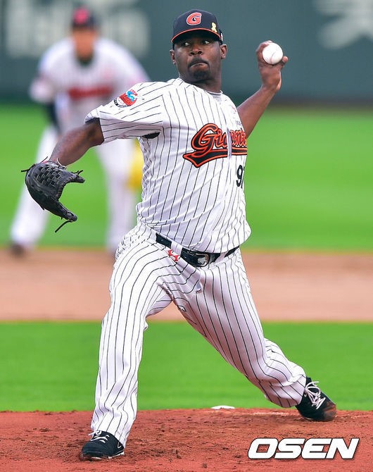 [OSEN=사직,박준형 기자] 7일 오후 부산 사직구장에서 열린 2014 한국야쿠르트 세븐 프로야구 롯데 자이언츠와 SK 와이번스의 경기, 1회초 롯데 선발투수 유먼이 역투하고 있다.
